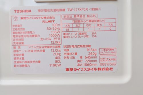 【東芝ドラム式洗濯乾燥機】のほか